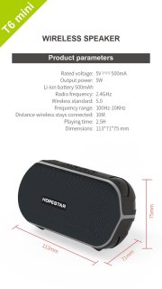 De Hopestar T6 Mini combineert draagbaarheid en duurzaamheid met verrassend vol geluid. Perfect voor wie een compacte speaker zoekt die tegen een stootje kan en moeiteloos verbinding maakt met al je apparaten.